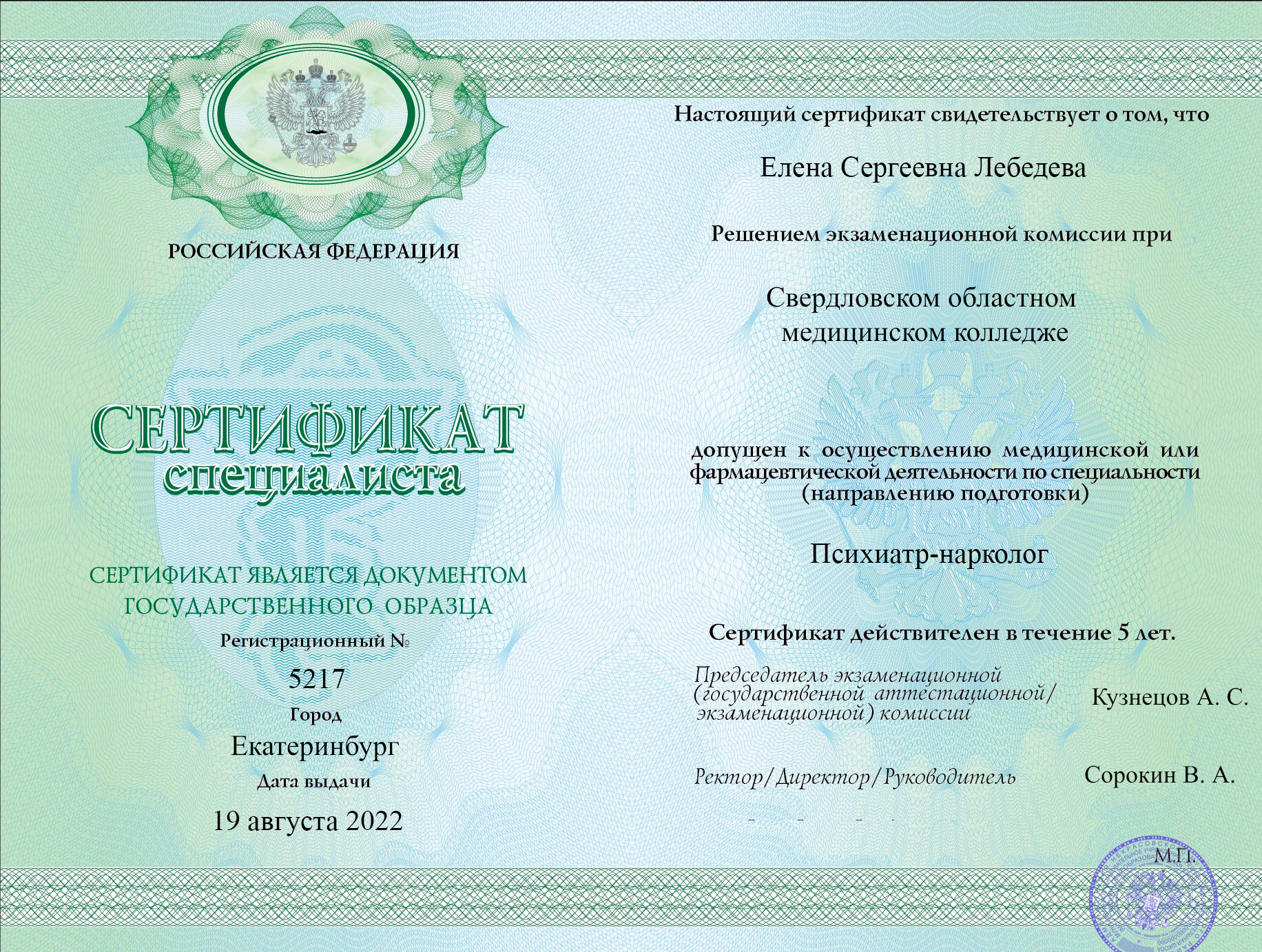 Елена Сергеевна Лебедева врач нарколог клиники доктора Стукаловой в Мариуполе